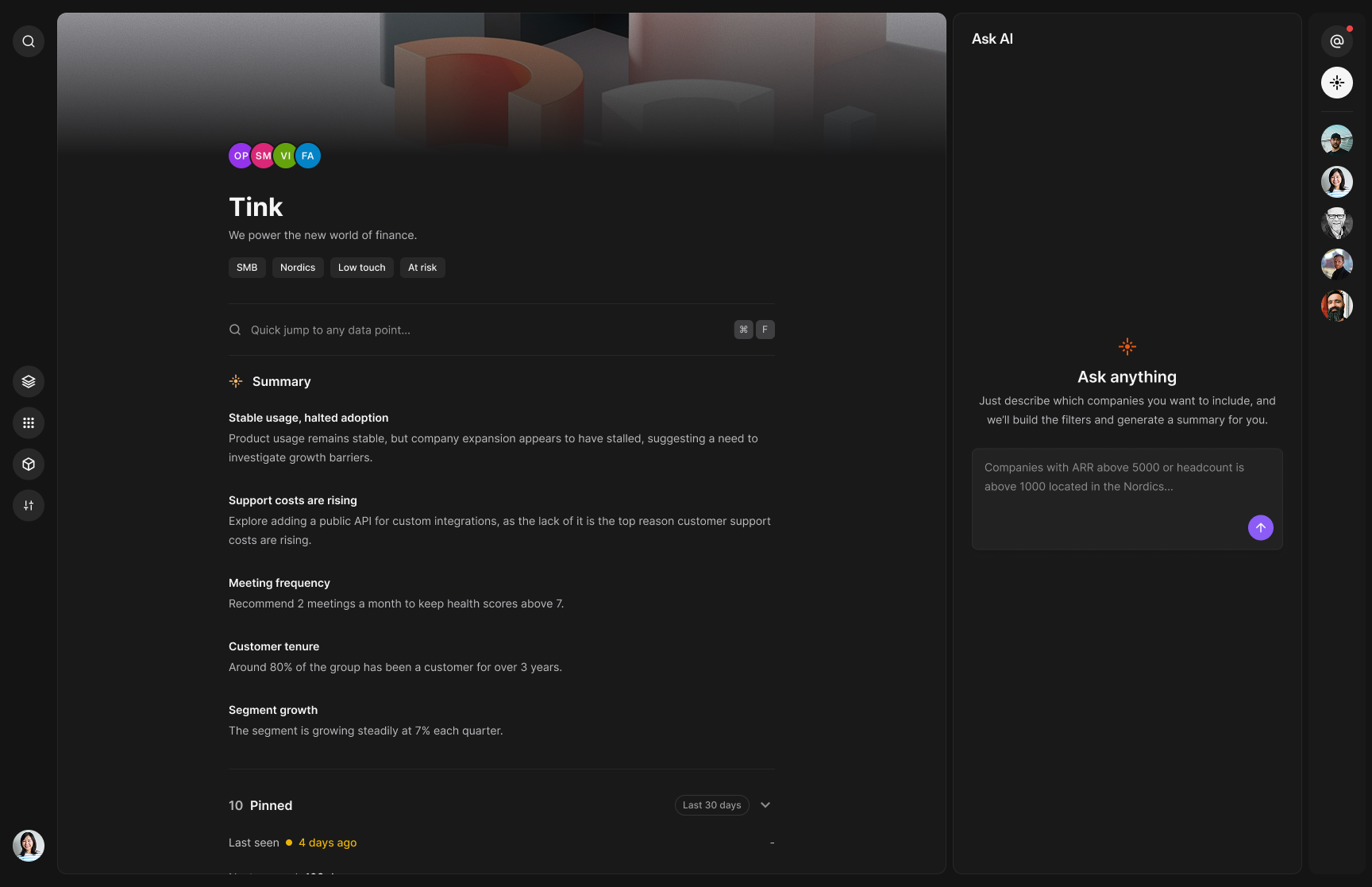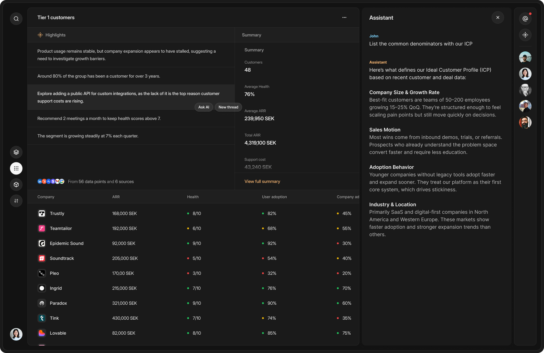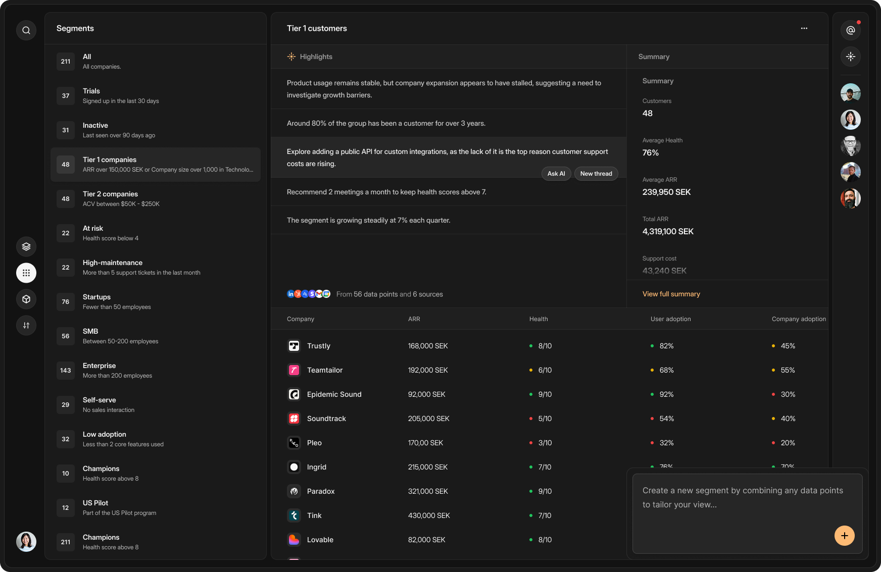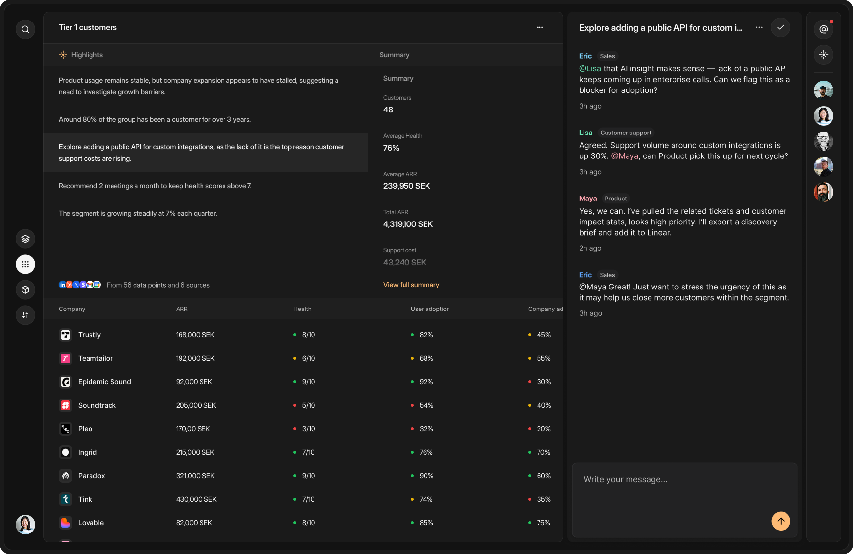 Sento is built for team collaboration. No need to craft presentations, share screenshots or invite the team into meetings. Talk with the right context around the right customers, segments or data-points.
